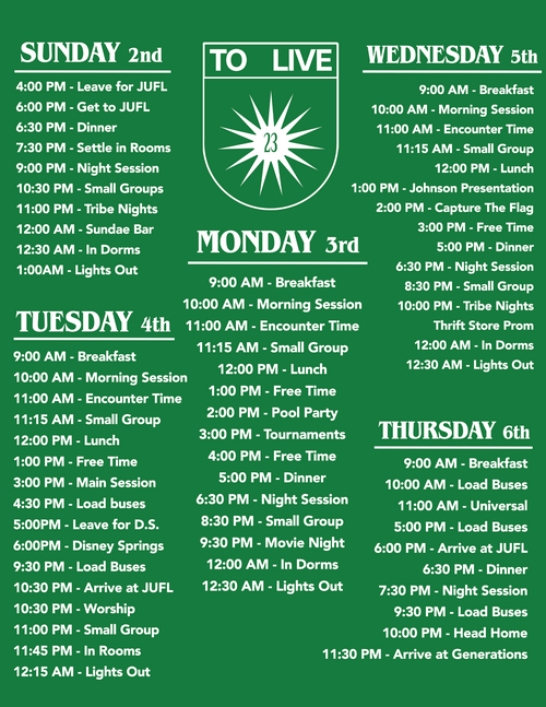 HIGH SCHOOL CAMP SCHEDULE 2023